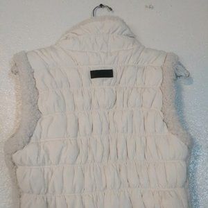 Calvin Klein women's size L white performance vest, black zippered closure, zippered pockets, faux fur trim, 100% polyester