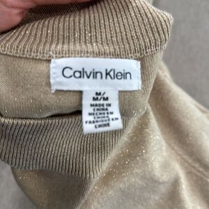 Calvin Klein women’s sweater Beige Tan Gold Shimmer Mock Neck Medium Long Sleeve