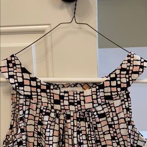 Calvin Klein women’s sleeveless top. Black/Pink/ Off White multi color. Sold polyester material. Drapes well. With enough spandex to hold its shape This top runs a little small. Worn a time or two only. Would make great top for the coming spring or under a jacket or sweater for the winter
