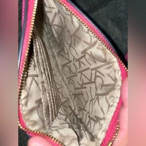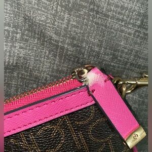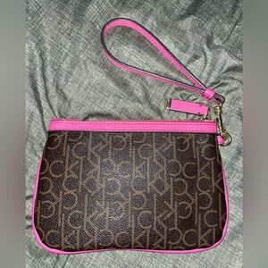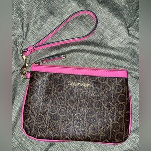 Used Calvin Klein wristlet. Opening strap a little damage, but opens and closes fine. Other minor marks