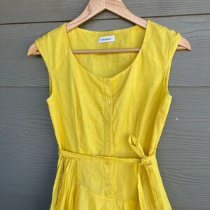 Calvin Klein yellow 100% cotton fit and flare belted dress-fits like size small