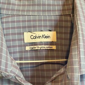 Calvin Klein 16.5" 32/33 Blue Purple Plaid Button Up Regular Fit Dress Shirt