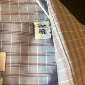 Calvin Klein Mens 16.5" 32/33 Blue Purple Plaid Button Up Regular Dress Shirt