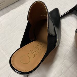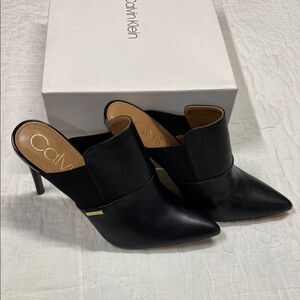 Calvin Klein Black Mules with Pointed Toe and Kitten Heel size 8.5