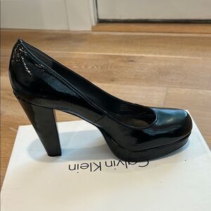 Calvin Klein Black Platform Patent Leather Pumps, Size 7.5