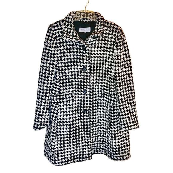 Calvin Klein Black & White Houndstooth Wool Coat Size 4 Women’s