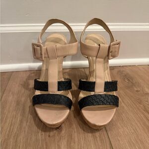 Calvin Klein Black and Tan Heels with Ankle Straps