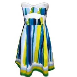 Calvin Klein Brushstroke Stripe Strapless Dress Size 8 Colorful, Artsy, Coastal