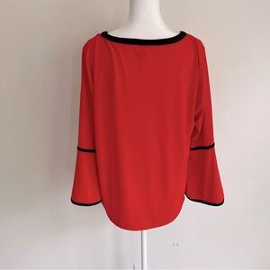 Calvin Klein Burnt Orange Notched Collar 3/4 Bell Sleeves Gold Hardware Top