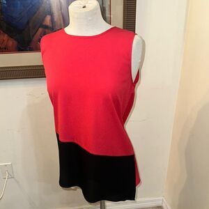 Elevate your wardrobe with this chic colorblock sleeveless top. Featuring a bold red and black design, it's perfect for any occasion. Pair it with your favorite jeans or skirt for a stylish look. Excellent condition!