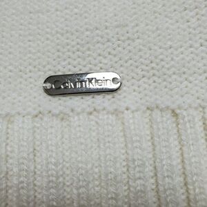 Calvin Klein Cream Knit Pullover Cowl Neck Sweater Ribbed Gray Diamond Stripe