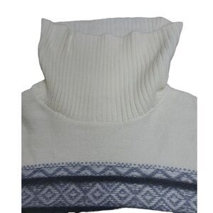Calvin Klein Cream Knit Pullover Cowl Neck Long Sleeve Sweater Ribbed Front with Light & Dark Gray Diamond Triangle Geometric Stripe Angora Like Fuzzy Front Pattern in a Women's Size M