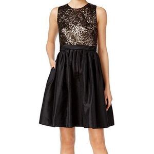Calvin Klein Fit & Flare Dress, Sequined top, taffeta skirt, Back button closure with keyhole, Crewneck, Lined. 100% polyesterSize 6