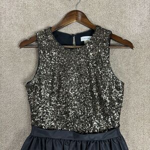 Calvin Klein Fit & Flare Dress Size 6 Gold/Black Sequin Taffeta Sleeveless Party