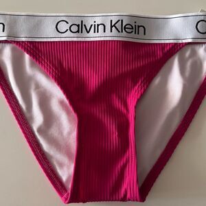 Calvin Klein Fuchsia Ribbed Logo Band Bikini Bottom, XS, NWOT