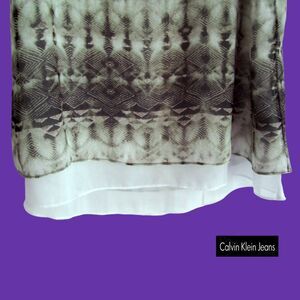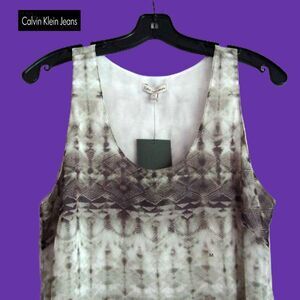 Calvin Klein Jeans |NEW| Bohemian Abstract Khaki Tie Dye Scoop Neck Lined Chiffon Tank Top M. A trendy high-low style with a bold abstract tie dye print in a chiffon contrast colored lined fabric. Make flattering style part of your day routine; a fresh look with a combination of tie-dyed prints. It is a simple design with an eye catching style. You will love it! See pics for details and the Table Chart in the pics to size this top. Specific measurements are provided upon request.