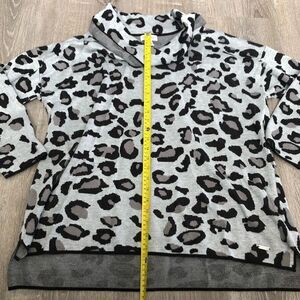 Womens Calvin Klein Leopard Print Cowl Neck Gray & Black Long Sleeve Pullover Sweater Top. Size XL Extra Large. No rips, tears or stains. Pit-to-pit 22", Collar-to-Hem 23.5". See photos for condition.