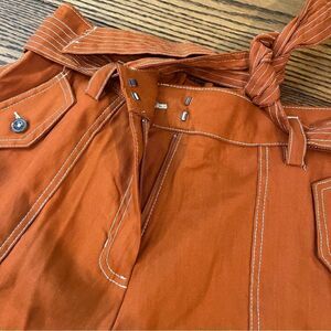 Calvin Klein Linen Blend Tie Waist Belted Shorts Size S Burnt Orange Mom High