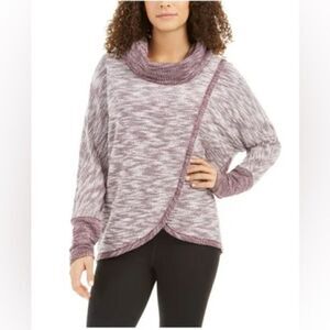 • ”Perfect for wearing alone or over athletic wear, this top from Calvin Klein features a flattering cowl neckline and a mix of spacedyed knits.”