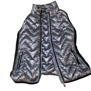 Calvin Klein Black & Silver Performance Metallic Funnel-Neck Premium Down Headphone Access Puffer Vest