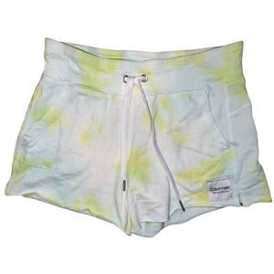 Calvin Klein Performance Yellow Blue Tie Dye French Terry Shorts Women's S NWT