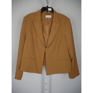 Keywords: Calvin Klein plus blazer 24W, tan cropped office jacket, women’s plus size career blazer, structured workwear jacket, camel blazer lined, modern classic plus office blazer