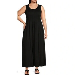 Plus Size Scoop Neck Sleeveless Smocked Knit Jersey Maxi Dress