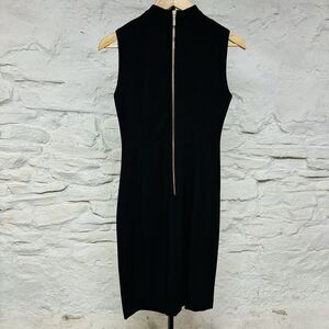 Calvin Klein Size 4 Little Black Sexy Sheath Dress Gold Zipper Bow Collar Tight