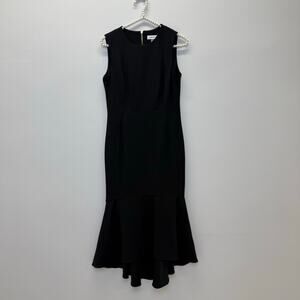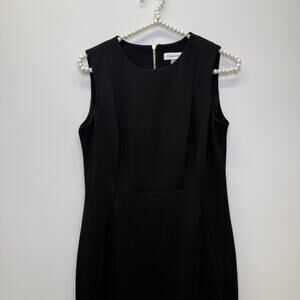 Sleeveless, mock, dropwaist, zipper detail, black, midi-calf length look