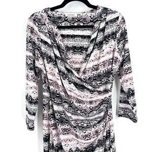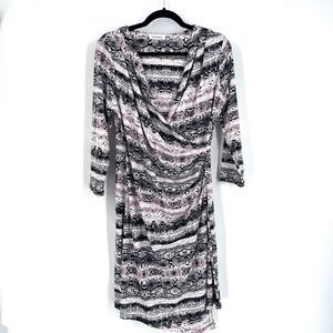 Calvin Klein Snake Skin Print Ruched faux Wrap Midi Dress medium office career