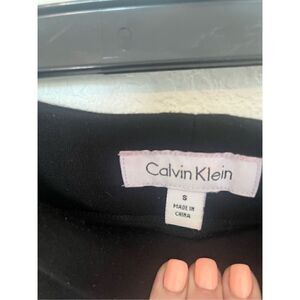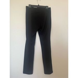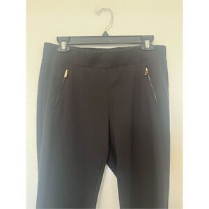These gently worn Calvin Klein stretch pants/leggings are perfect for everyone’s wardrobe. Elastic waist with gold tone zippers at front pockets. Slim fit.
