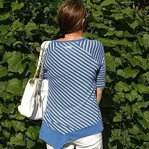 Diagonal Stripe blouse/Asymmetrical Hemline Large. White jeans waist 35" length "41
