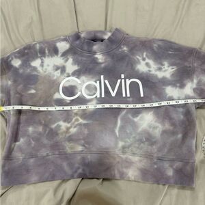 Calvin Klein Tie Dye Crop Crew Logo Sweatshirt, Color Sky Blue, Size Medium.
