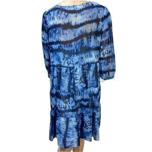 Calvin Klein Tie-Dye Tiered Faux Wrap Dress Size 16 Blue Chiffon 3/4 Sleeve NWT