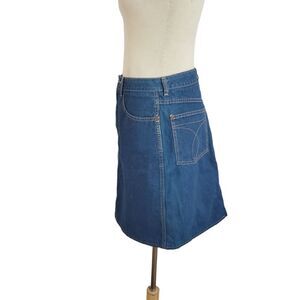 From the height of Calvin Klein Jeans. Early 80s skirt in good condition one mark on back neat bottom...see pics. Not a hole. No stretch..runs small.