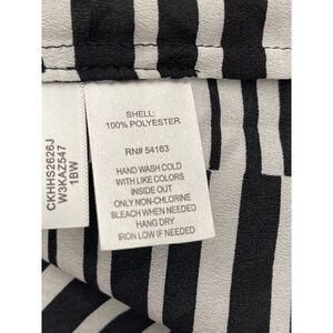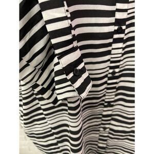Calvin Klein Women Black /White V Neck Striped Roll Tab Tunic Blouse Size 1X