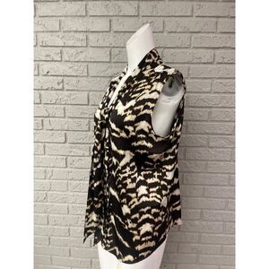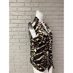 Calvin Klein Women Brown Animal Print Sleeveless Necktie Blouse Size L