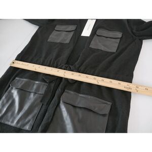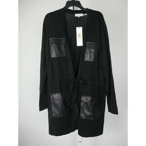 Calvin Klein Women's Black Faux Leather Pocket Cardigan S