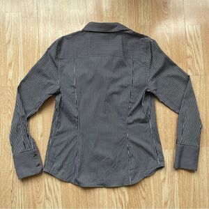 Calvin Klein Women’s Black/White Striped Essential Fit Button Down Blouse