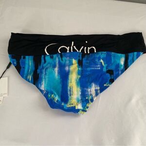 Calvin Klein Women's Standard Logo Cheeky Bikini Bottom Blue Size Soft Waist S