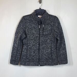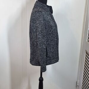 Calvin Klein women's gray & black cardigan sweater. Size medium. (runs a little small). Zips up in the front with three pockets.