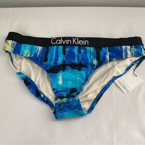 Calvin Klein Women's Standard Logo Cheeky Bikini Bottom Blue Size S
