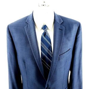 Calvin Klein Wool 2 Button Blazer 40L Blue Sharkskin