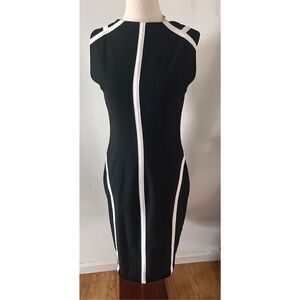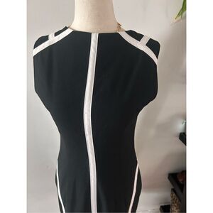 Beautiful black and white dress business like the zipper goes to the front measurements are pit pit is 17 inches waist 14 inches hips is 18 inches top to bottom is 36 inches
