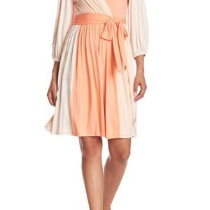 Calvin Klein color block Surplice Faux Wrap Dress in blossom,peach & cream SZ12