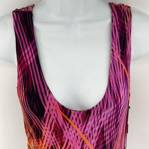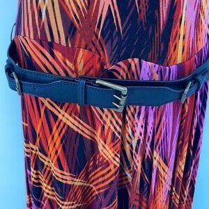 Calvin Klein flowy dress NEW NWT 4 belted maxi graphic fire print purple orange