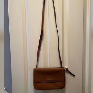 Calvin Klein pebbled leather brown Crossbody. Excellent condition. 9.5” x 6.5”