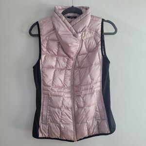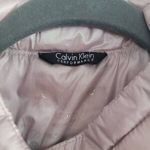 Calvin Klein performance pastel pink down vest sleeveless zip up with an asymmetrical collar. In excellent pre owned condition with no signs of damage and minimal wear as shown in photos.