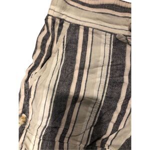 Calvin Klein striped linen blend elastic waist side pockets shorts size 2. Cinch tie waist. Button details at hems in front. Pull on comfy shorts.