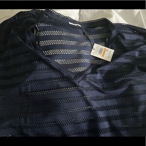 New with tags, navy blue, 36 inches long, 2 front pockets, draw string waist, mesh.